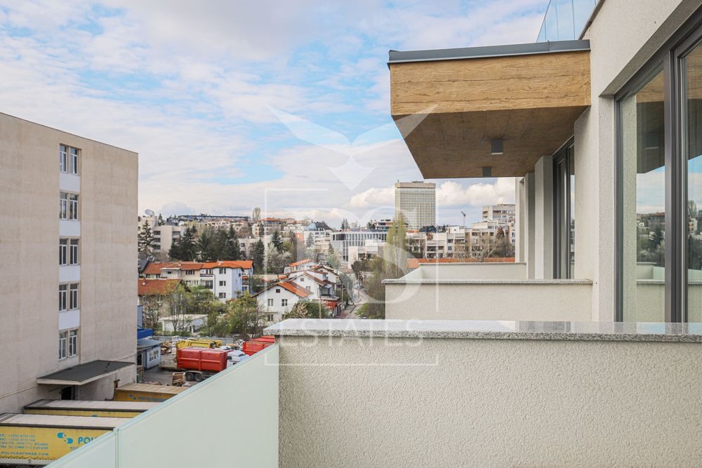 Апартаментът е разположен на 6-ти, предпоследен жилищен етаж и предлага комфорт, стил и удобства на най-високо ниво. Изложение - югозапад.