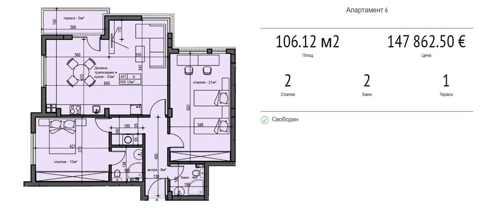 Имотът може да бъде резервиран и свален от продажба със заплащане на депозит, след което се прекратява провеждането на огледи с други купувачи и започва подготовка на документите за сключване на предварителен и окончателен договор. Свържете се с отговорния брокер за този имот за подробна информация.
