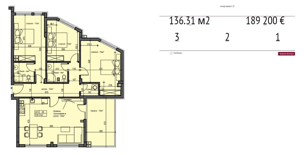 Имотът може да бъде резервиран и свален от продажба със заплащане на депозит, след което се прекратява провеждането на огледи с други купувачи и започва подготовка на документите за сключване на предварителен и окончателен договор. Свържете се с отговорния брокер за този имот за подробна информация.