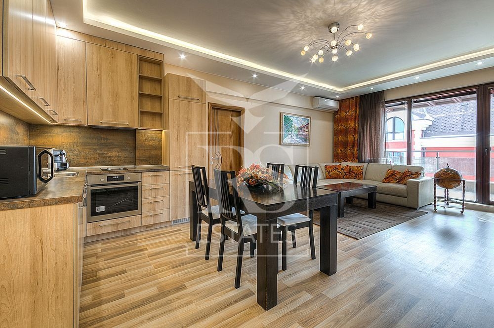 Светла и просторна дневна с голяма тераса, кухненски бокс с трапезна част, три спални, дрешник, две бани с тоалетна и мокро помещение.