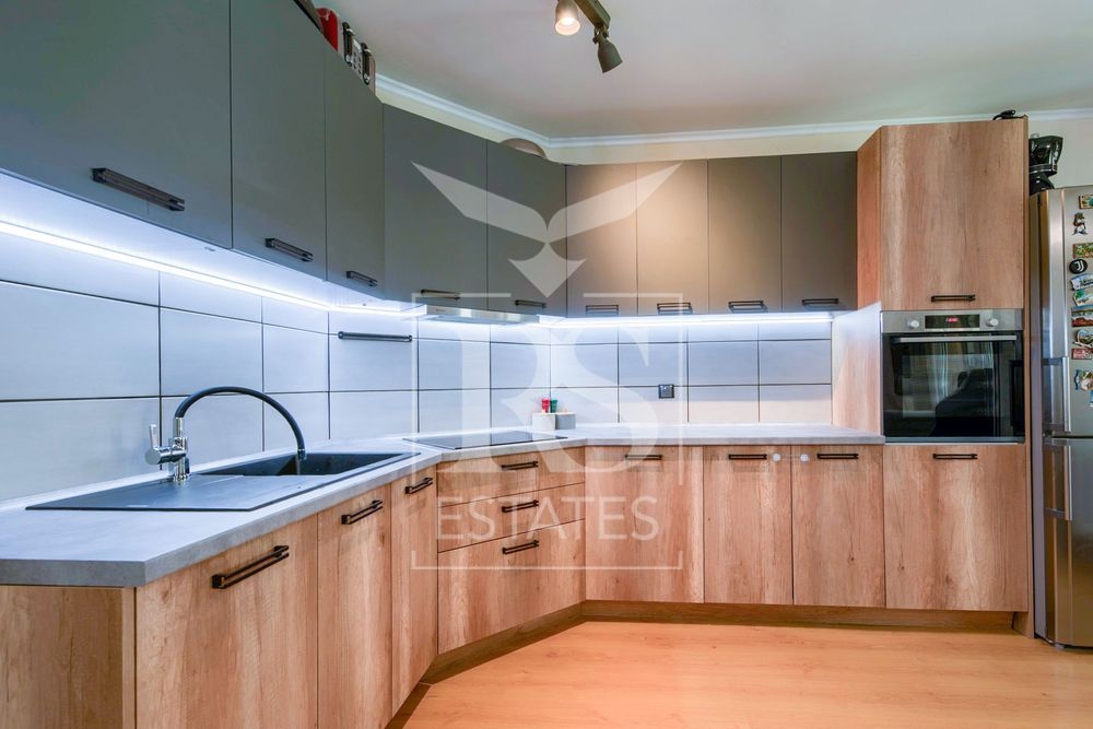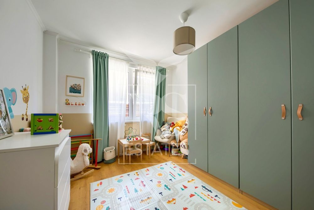 Апартаментът е завършен с качествени материали, като голямата тераса осигурява допълнително пространство за отдих и семейни събирания.