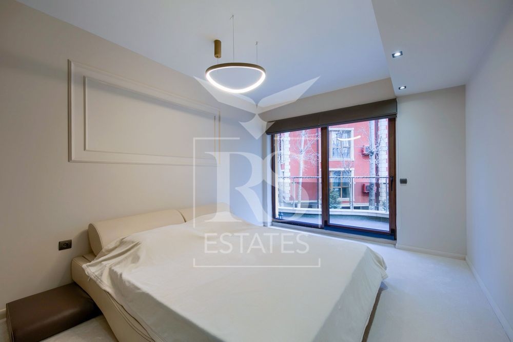 Жилището се предлага напълно обзаведено и оборудвано с модерни мебели. Кухнята е по индивидуална поръчка и е оборудвана с висококачествена техника на марката BOSCH/фурна, котлони, миялна машина, хладилник, аспиратор. Газово котле, Ел. котле и Бойлер за топла вода.