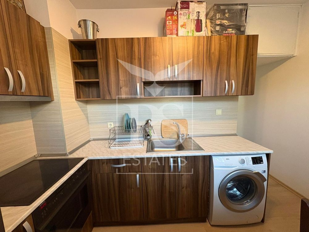 Жилището е обзаведено както следва: хол – луксозен ъглов диван, холна маса, трапезна маса с 4 стола, 65-инчов телевизор, саунд бар и въздухопречиствател; кухня – напълно оборудвана с индукционни котлони, фурна, хладилник, пералня и маса с 3 стола; спалня – двойно легло с ракла, нощни шкафчета, голям гардероб, бюро с офис стол, скрин и етажерка. В хола е монтиран климатик за отопление и охлаждане.