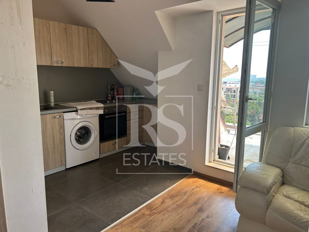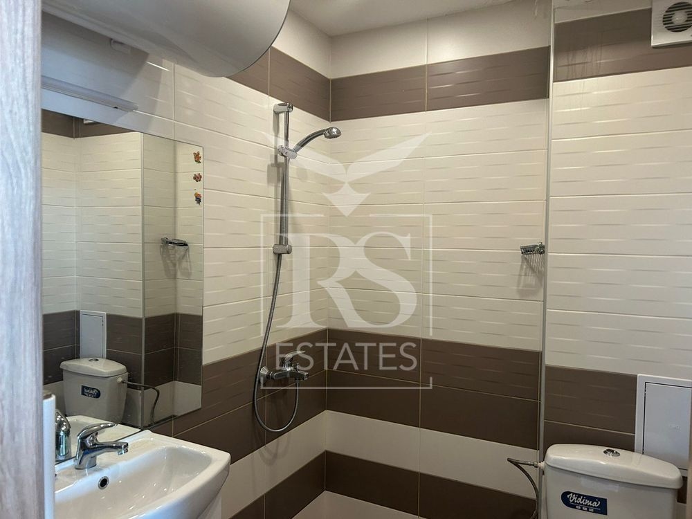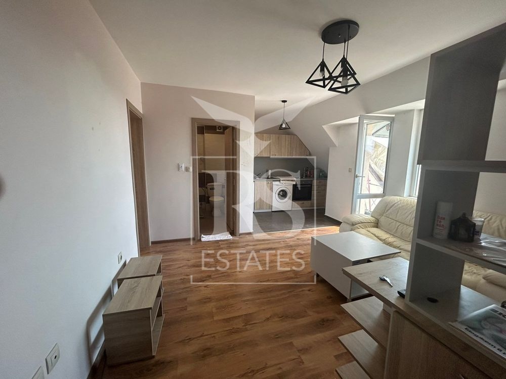 Хол с кухненски бокс, спалня с преход от дневната, баня с тоалетна, тераса с източно и южно изложение. Апартаментът се намира на последен етаж, което гарантира спокойствие и светлина през целия ден.