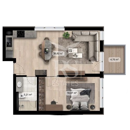 Просторна дневна с кухненски бокс – 30.82 кв.м