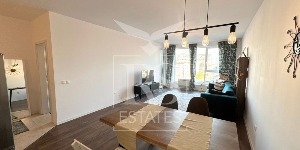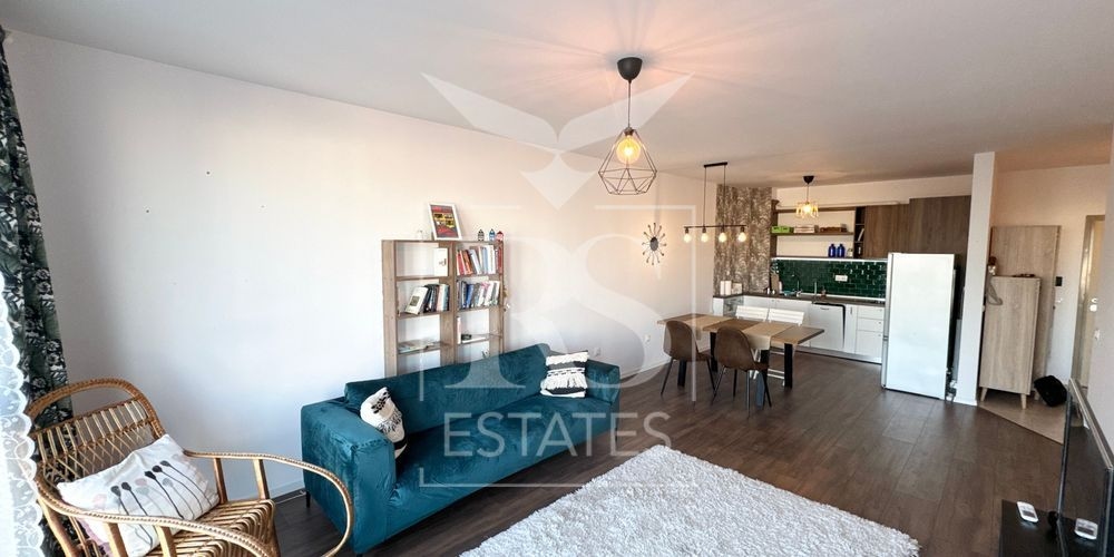 Отдава се напълно обзаведен с нови уреди. Куня с вградена фурна и котлони, хладилник, съдомиална машина. В коридора има мокро помещение с пералня и бойлер. Отоплението е на ток посредством климатици, смарт система на Samsung. Разполага с тераса, побираща масичка и столове.