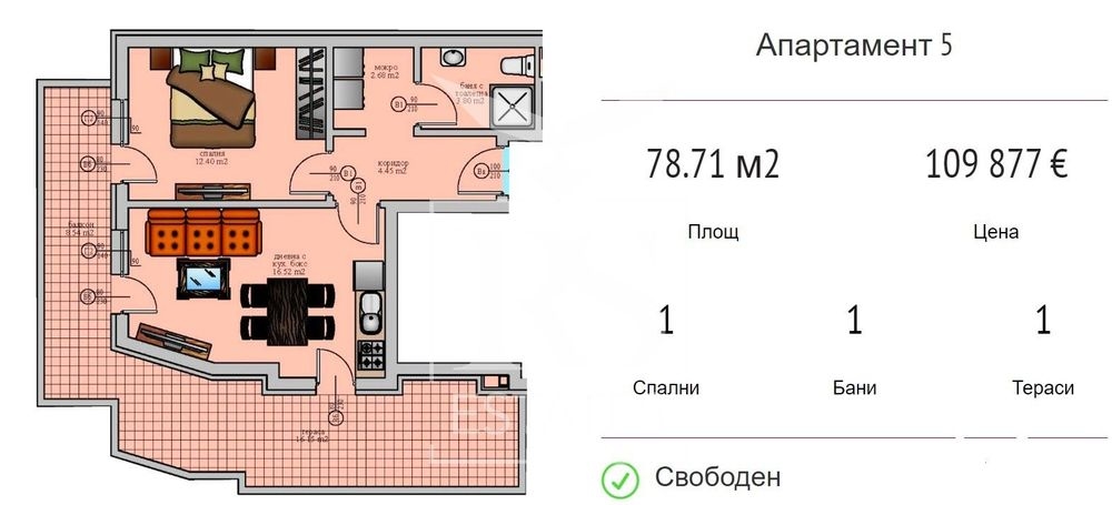 Имотът може да бъде резервиран и свален от продажба със заплащане на депозит, след което се прекратява провеждането на огледи с други купувачи и започва подготовка на документите за сключване на предварителен и окончателен договор. Свържете се с отговорния брокер за този имот за подробна информация.