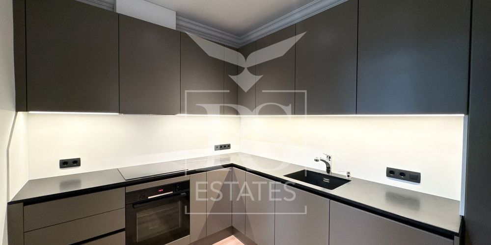 Имотът е след основен ремонт, напълно обзаведен и оборудван с висок клас мебели и електроуреди. Подови настилки от естествен паркет, висококачествена дограма, входна блиндирана врата. Отоплението е на ТЕЦ и на инверторни климатици.