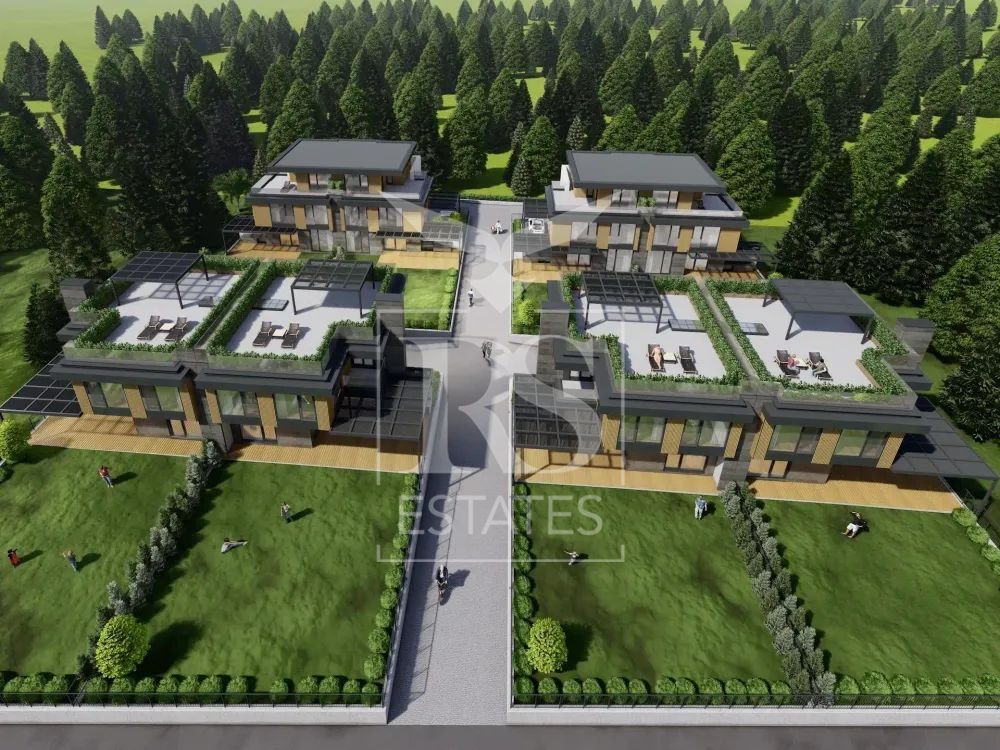 Комплекс от осем еднофамилни къщи, разположени сред зеленина и тишина в близост до Камбаните, на едва 20 минути с автомобил от центъра на София. Отличават се с елегантна архитектура, модерни решения и отлично вътрешно разпределение. Подходящи са за семейства, търсещи комфорт, спокойствие и близост до природата, без да се отказват от удобствата на града.