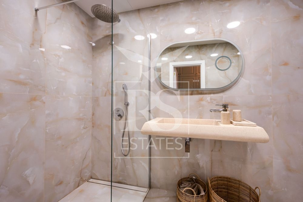 Жилището е разположено на 6-ти етаж, в тухлена сграда от 2023 г., с контрол на достъпа с чип, домофон система и асансьор. Сградата е с малък брой апартаменти, поддържани общи части и подземни гаражи. Имотите в нея се отличават с високо качество на вложените материали и благоприятни изложения. Имотът е с обща площ 179кв.м. и чиста такава от 147кв.м. Терасата му е с размер от 41кв.м. Изложението е Изток-Запад.