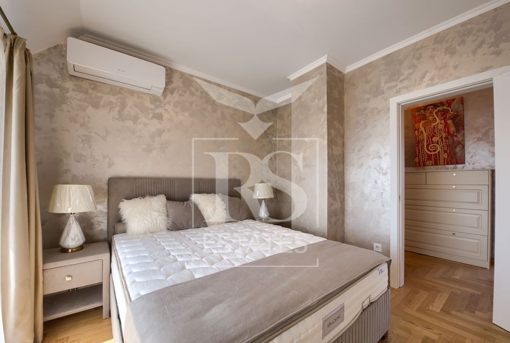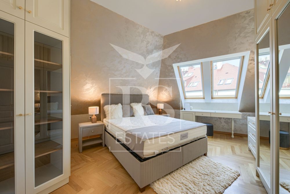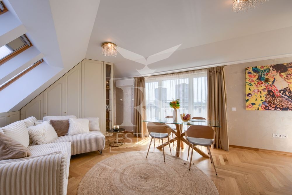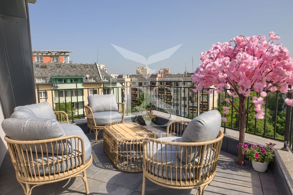 Стилен, четиристаен апартамент тип пентхаус, находящ се в кв. Гео Милев. Имотът е чисто нов и обзаведен до ключ. Интериорът е вдъхновен от изкуството на австрийския художник Густав Климт. Голямата панорамна тераса с множество зеленина и градинска мебел създават усещането за къща в градската среда.