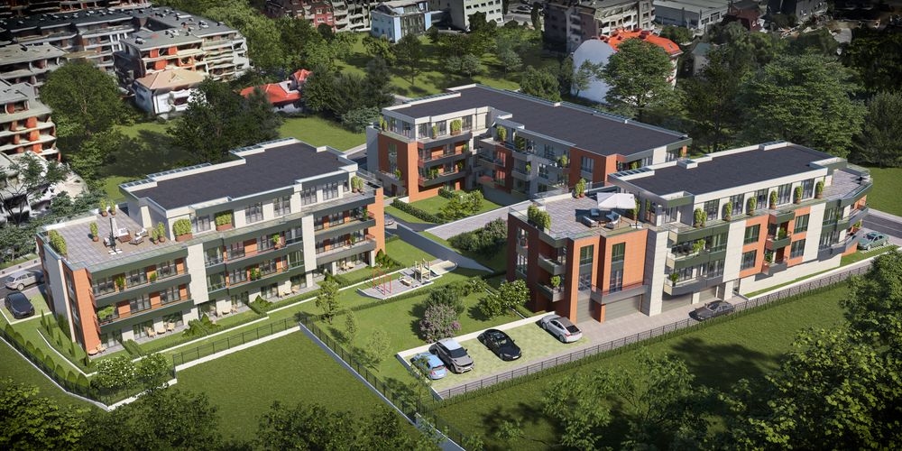 Имоти за закупуване в луксозен затворен комплекс на площ от 5 000кв.м. състоящ се от три сгради с голяма градина от 3000 кв.м., с детска площадка и фонтан. Комплексът разполага с удобни големи гаражи и множество паркоместа. Партерните апартаменти са с големи градини от 50 до 150 кв.м. Всички апартаменти са с тераси минимум 5 кв.м.
