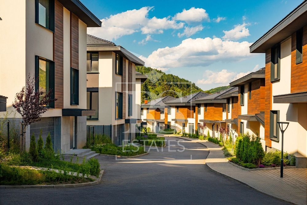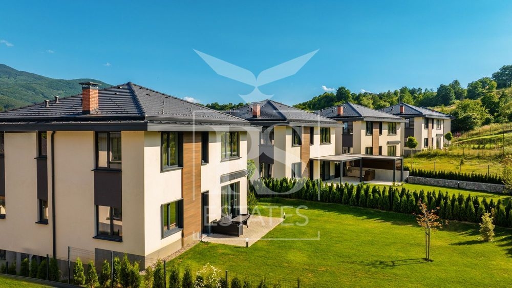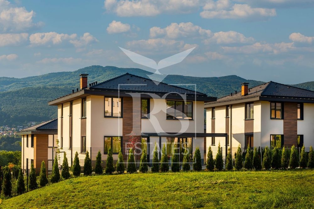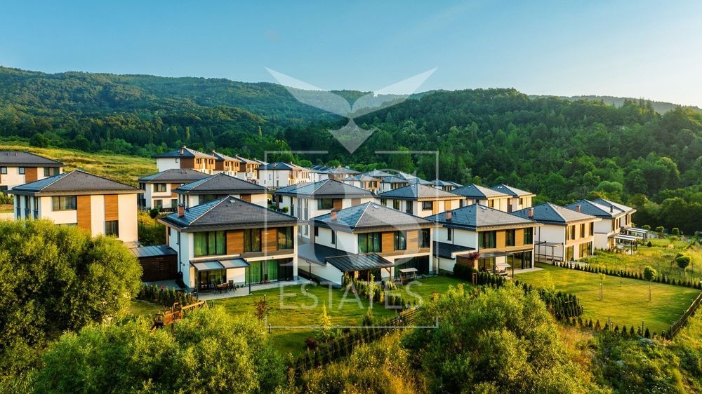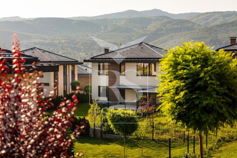Къщите са на 20 минути от динамиката на града, еднофамилните къщи са разположени сред зеленината на югоизточен планински склон, обграден от грабваща природна панорама и даващ неподправено усещане за простор и спокойствие! Общата естетика и архитектура на затворения комплекс не доминира и не подчинява богатството на природния пейзаж, а по естествен и елегантен начин се интегрира в него, съчетавайки високия комфорт и съвременните удобства на градския стил с чистото усещане за пълноценен живот сред природата.Стил и естетика в единство с природата. Благоприятствано от наклона на терена, алейната мрежа и разположението на сградите всички жилищни помещения в Комплекса къщите са изцяло насочени и отворени към най- пленяващата гледка от комплекса панорамата на Витоша. Предимство, което ще ви помогне да гледате на живота от различен ъгъл, по-красив и хармоничен!