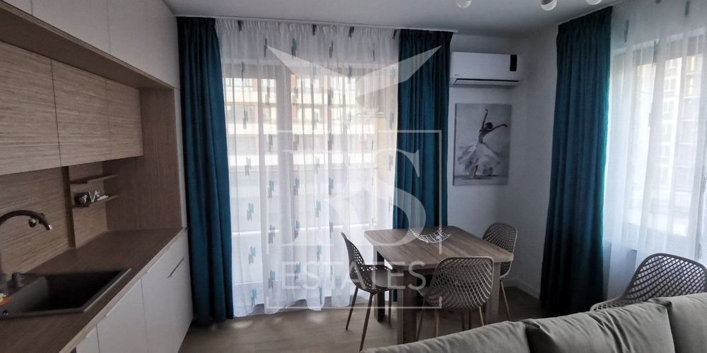 Апартаментът се състои от дневна с кухненски бокс,трапезарен кът, две спални, като една от тях е обзаведена, втората ще бъде обзаведена пожелание на наемателя, балкон.