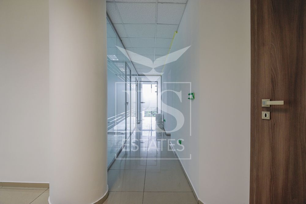 Шест отделни работни помещения преградени със стъклени и гипсокартонени стени, кухня, две тоалетни. Офисът може да бъде изцяло с отворено пространство или допълнително преграден според изискванията на Наемателя.
