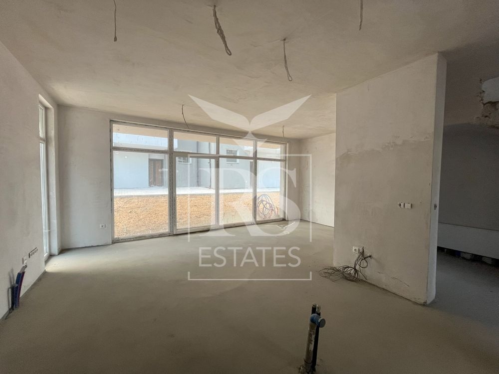 Партерен етаж: входно преддверие, техническо/гардеробно помещение, тоалетна, стълбищна клетка и хол с трапезария и кухня. Холът, трапезарията и кухнята са решени като общо пространство. Холната част е ориентирана в посока югозапад и от нея има пряк достъп до вътрешния двор. Кухненската част е ориентирана в посока запад. Възможност за преработка и разширяване на дневната зона с около 15 кв.м.