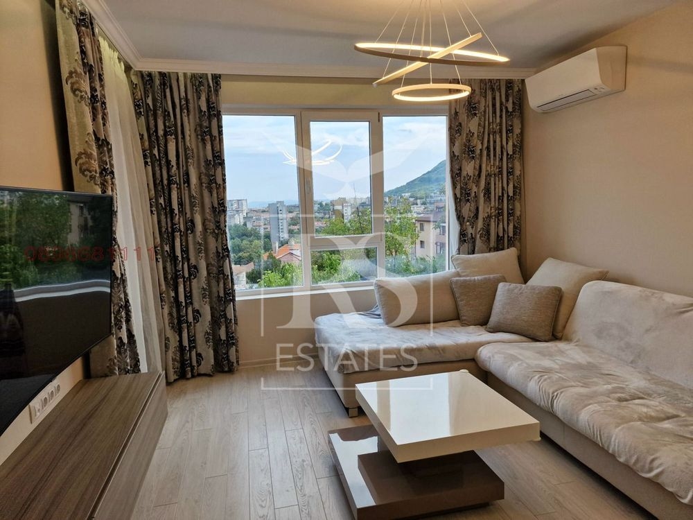 Агенция РС ЕСТЕЙТС продава двустаен тухлен апартамент с площ 68кв.м. в сграда ново строителство, в комплекс Южен бряг. Апартаментът се намира на втори жилищен етаж, изцяло южно изложение и е със следното разпределение: коридор, дневен тракт с кухненски бокс, спалня, тераса, баня и тоалетна. Имота се предлага обзаведен с вградени ел. уреди и климатик. В цената са включени маза и паркомясто. Комплексът е с контрол на достъпа и