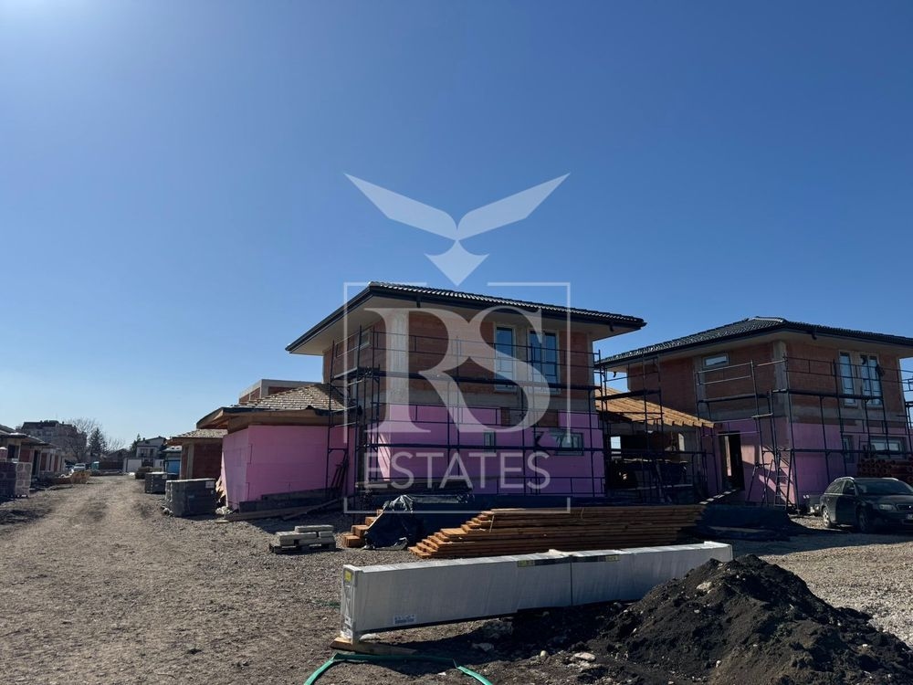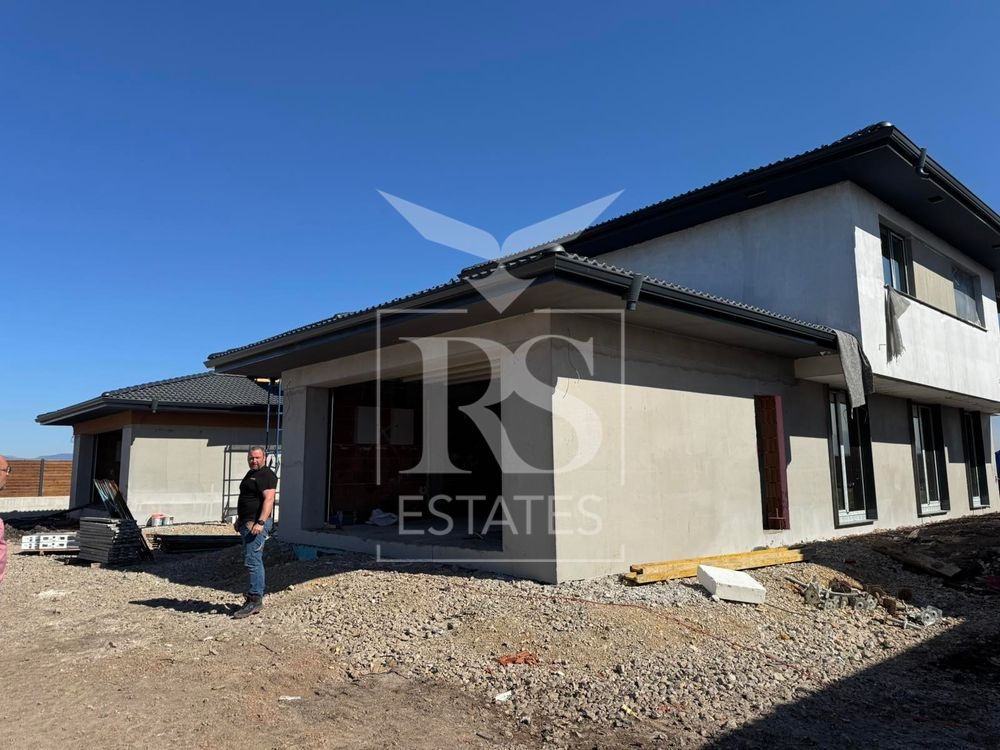 Технически характеристики: монолитна стоманобетонова конструкция; външна топлоизолация 20 см EPS с висок клас силиконова мазилка; тухлена зидария от висок клас; 7-камерна PVC дограма с троен стъклопакет; скатен покрив с керамични керемиди; изградена инсталация за термопомпа въздух–вода с отопление и охлаждане; подготвени инсталации за камина; висок клас електро и ВиК инсталации; шумоизолирана канализация.