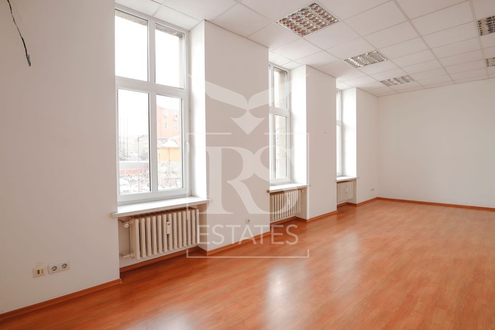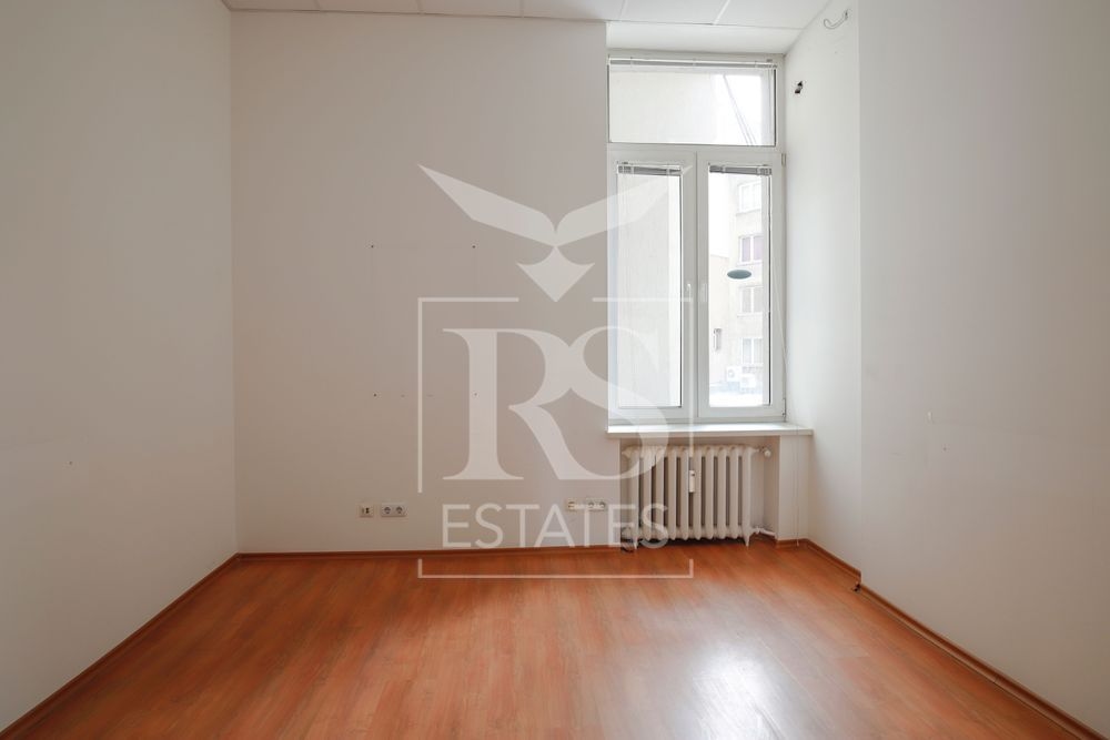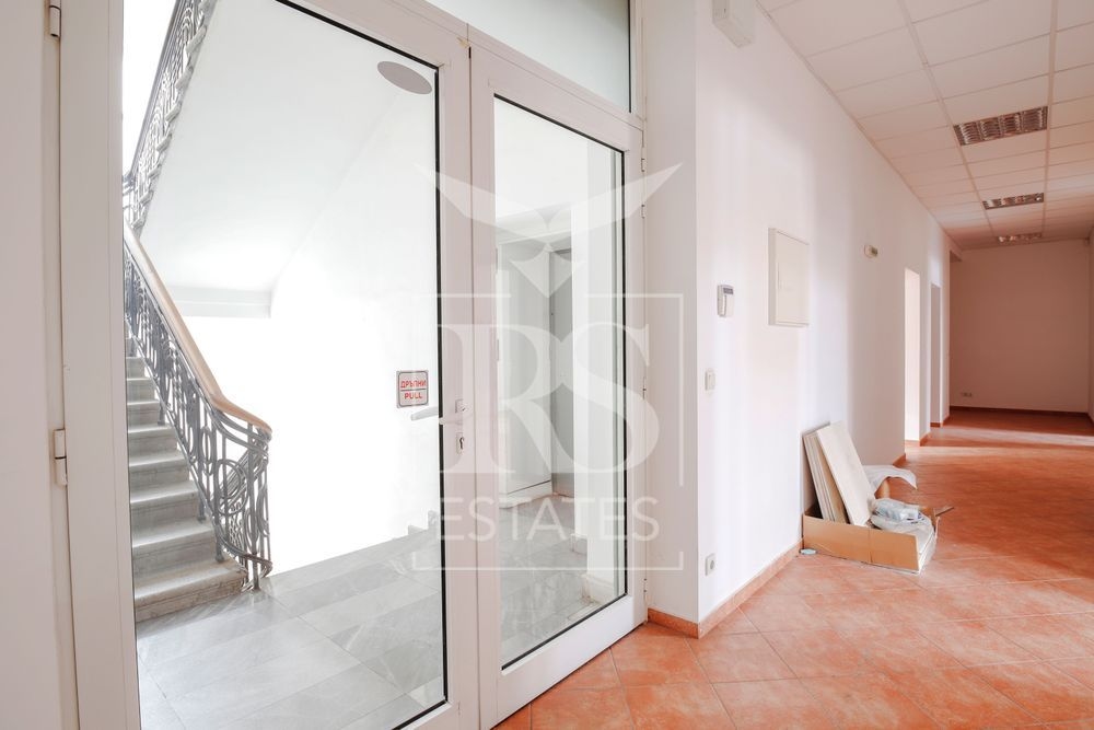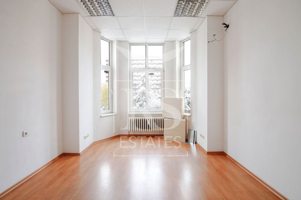 Просторен и представителен офис с обща площ 500 кв.м, разположен на първи етаж от пететажна тухлена сграда. Имотът се намира на първи етаж над търговски обекти и предлага отлична работна среда за компании, които търсят престижна бизнес локация в централната част на София.