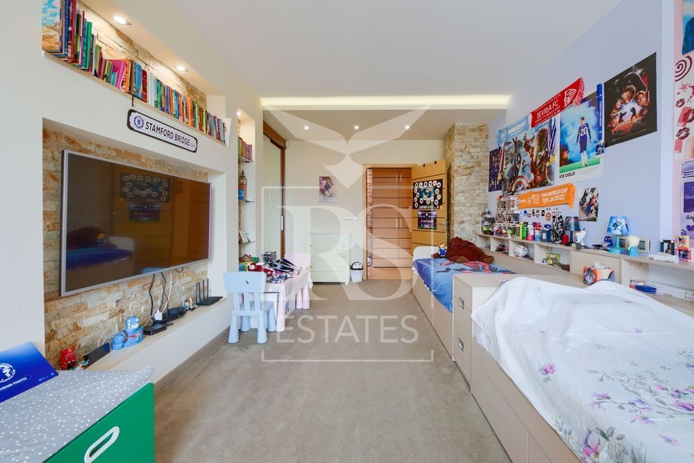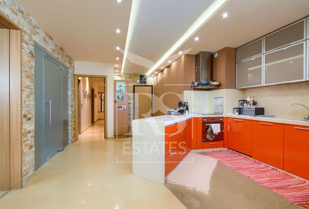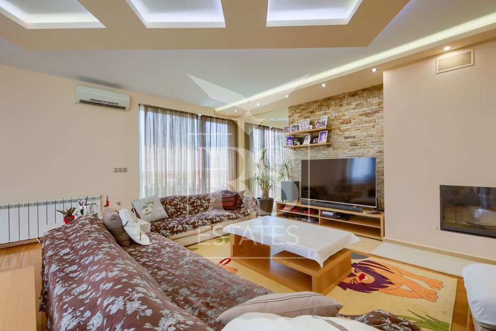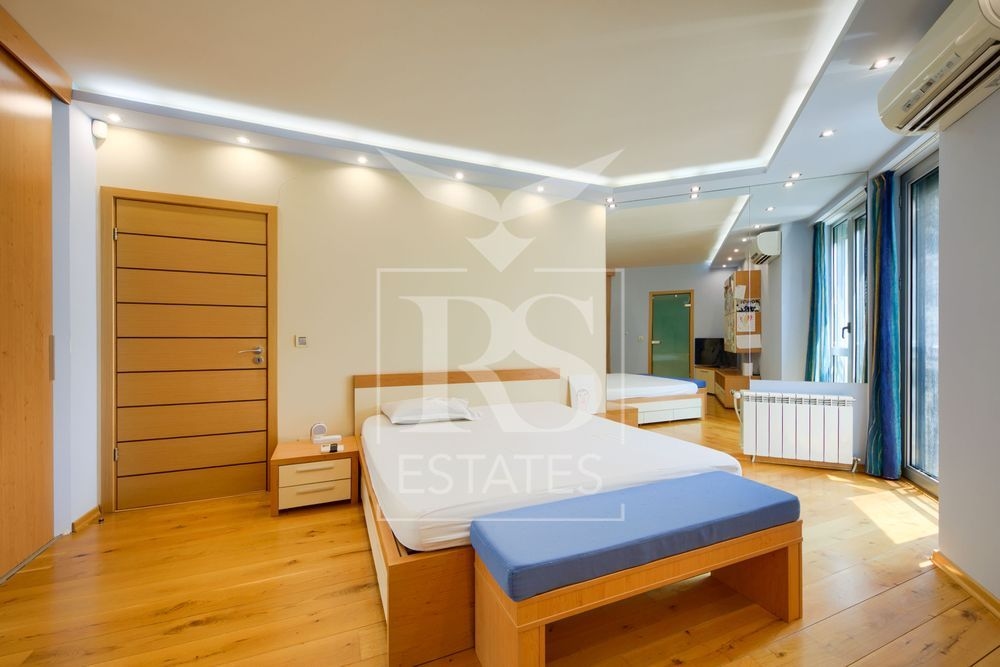 Просторен и светъл многостаен апартамент с площ от 273 кв.м, разположен на висок етаж в модерна сграда с отлично поддържани общи части, с контрол на достъпа и асансьор. Имотът е с южно изложение, напълно обзаведен и завършен с висококачествени материали. От всички помещения се разкрива впечатляваща панорама към Витоша планина. Отоплението е решено чрез централен газов котел за сградата и шест инверторни климатика. Предлага се възможност за закупуване на до четири подземни паркоместа с топла връзка към сградата.