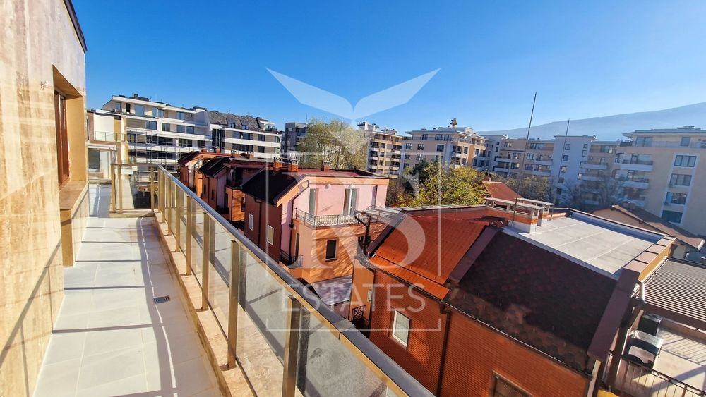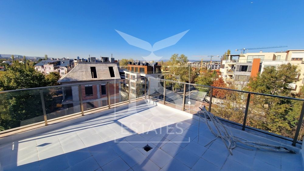 Ексклузивно за продажба слънчев и просторен тристаен апартамент-пентхаус с 4 големи тераси на пети, последен етаж в нова луксозна сграда. Жилището е единствено на етажа и се намира в малка сграда в строеж, с очакван Акт 16. Апартаментът е предимно с изложение юг, което го прави топъл и енергоефективен и е подходящ за целогодишно живеене. Жилището е със статут на апартамент.